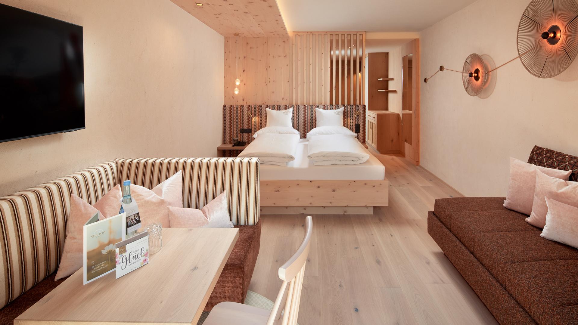 Junior Suite mit Zirbenholz mit Balkon mit ca. 35m² für 2-3 Personen