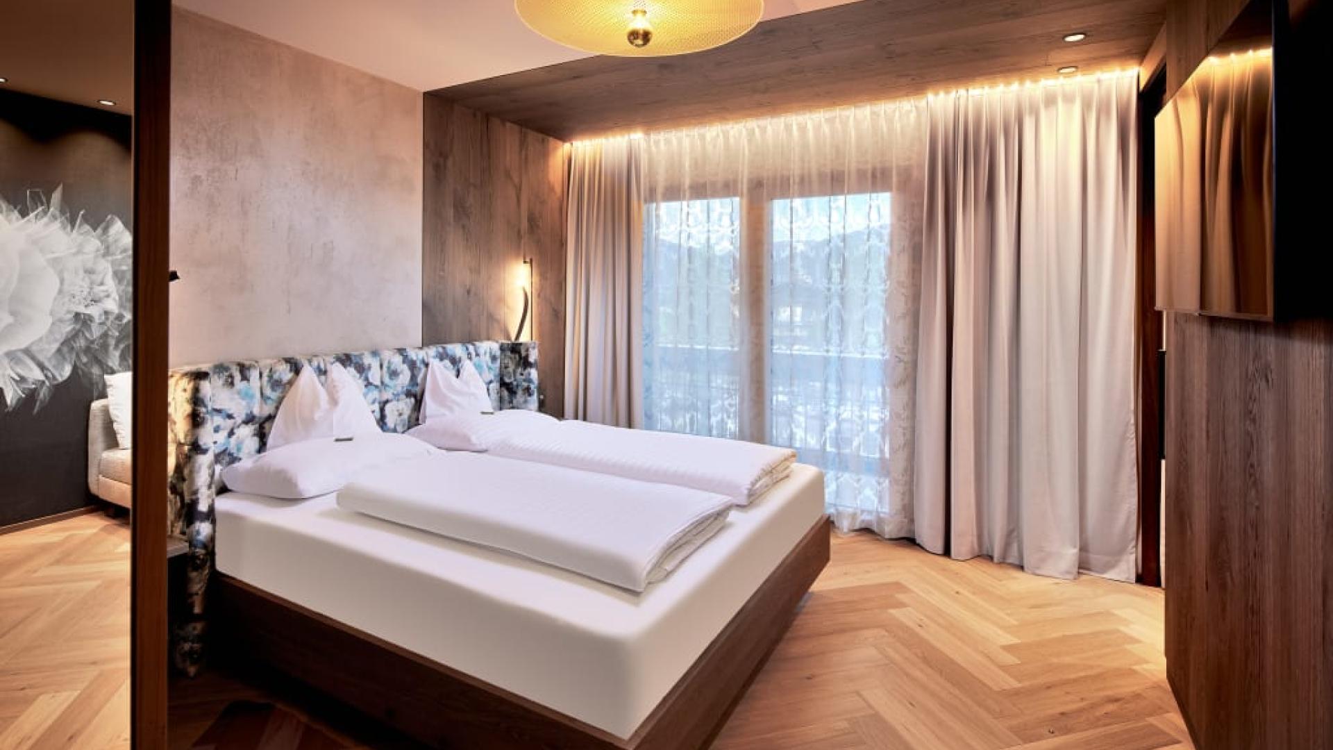 Boxspringdoppelbett mit Leselampe, durch Schiebetür abtrennbarer Wohnbereich mit Sitzgelegenheit, Eckschlafcouch und TV, Kabel-TV mit Sky- und Radioprogrammen, Telefon und Safe, Kühlschrank, kombinierter Holz- und Teppichboden, mit Balkon, geräumiges Badezimmer mit Dusche, Kosmetikspiegel, Föhn, Shampoo und Duschgel, separates WC, Bademäntel und Slipper, nur wenige Schritte vom neuen Rooftop Outdoor Pool entfernt (gleiches Stockwerk), die Zimmer befinden sich im Haupthaus (Neubau)